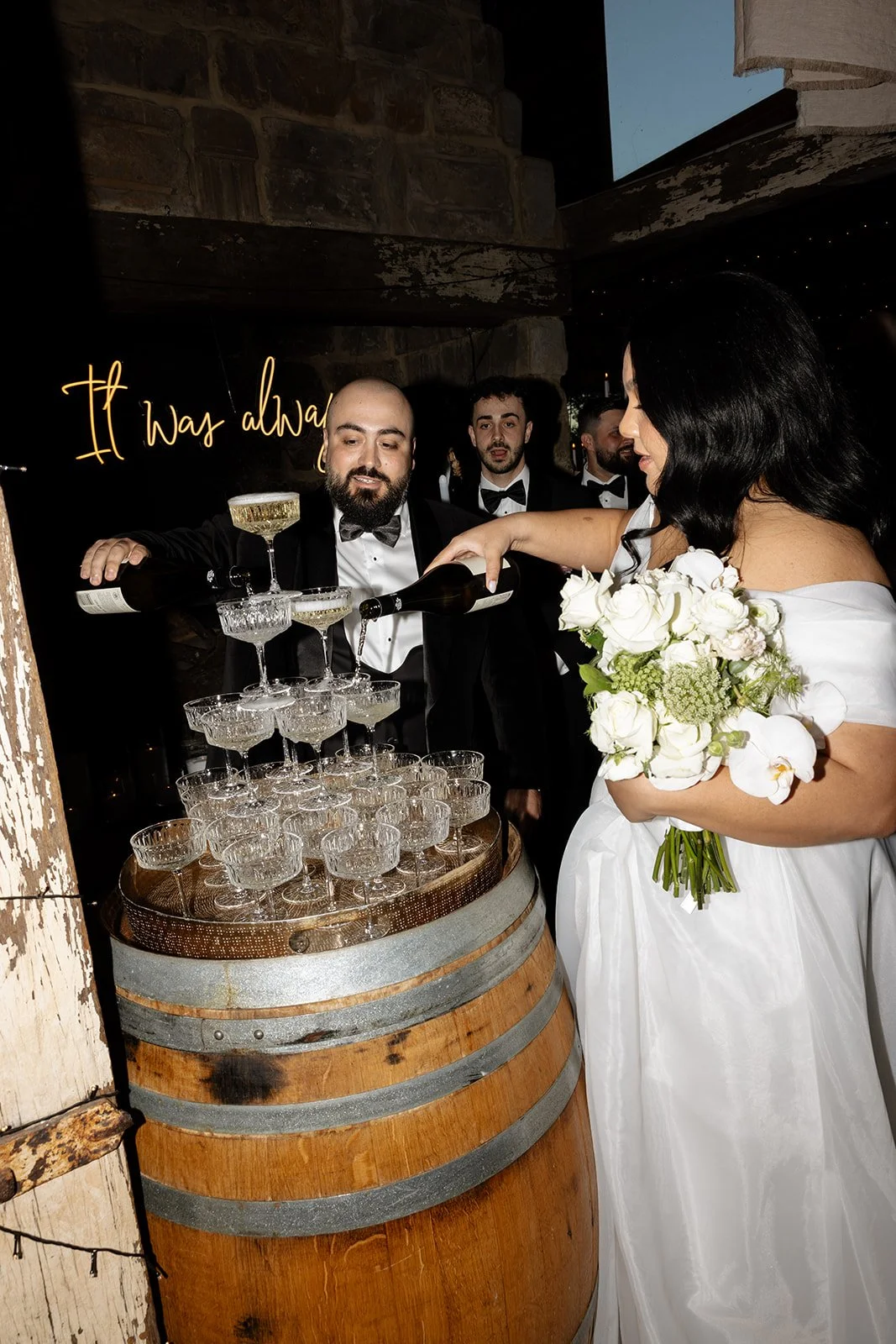 A ‘happily ever after’ so captivating we had to feature it twice! While our barrel room, with its natural timber features and ornate touches, is region-renowned for its obvious Tuscan-inspired architecture, it is also a surprisingly flexible space that offers almost unlimited styling choices. Taylah and David’s striking fireplace display is proof of this versatility, which featured masses of pastel pink and coral roses, mismatched clear glass candle sleeves, beige muslin drapery and a bold neon sign. Their twilight reception here felt both elegant and comfortably lived-in - a completely unique look to match the newlyweds’ vibe perfectly! We can’t wait to receive the full gallery. Keep an eye on our socials…